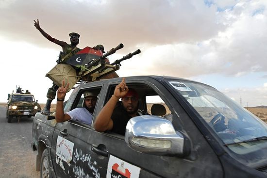 9月9日,利比亚反对派战士在向拜尼沃利德前线进发。