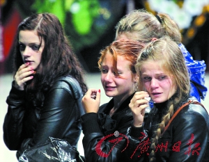 俄罗斯雨中泪祭冰球队员