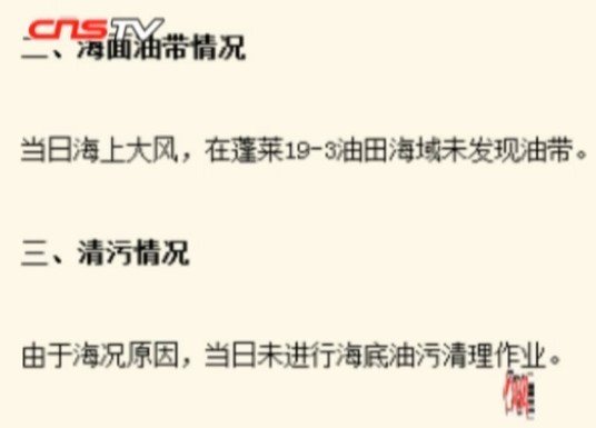 国家海洋局监测结果:蓬莱油井仍有油花溢出