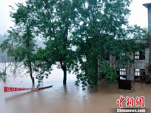 四川平昌遭遇暴雨袭击 县城进水学校被淹(图)