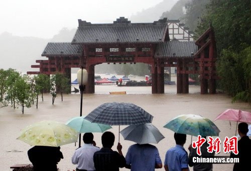四川南充“嘉陵第一桑梓”景区被洪水淹没