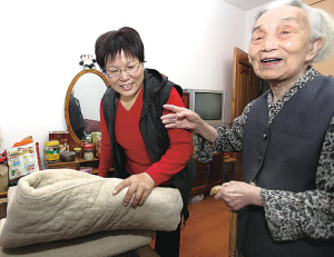 昨日上午,海曙区月湖街道居家养老服务中心服务员徐小妃来到平桥社区92岁独居老人江奶奶家中,给老人铺上厚垫被。随着天气转凉,徐小妃穿梭于照顾对象家中,为老人们备好防凉衣被。徐小妃七年如一日,先后为8位老人料理家务、买菜做饭、陪医配药。她曾先后获得“中华孝亲敬老之星”、区居家养老“十佳服务员”、“明星服务员”等荣誉称号。