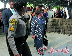 杰克逊的母亲凯瑟琳(右)抵达法院。