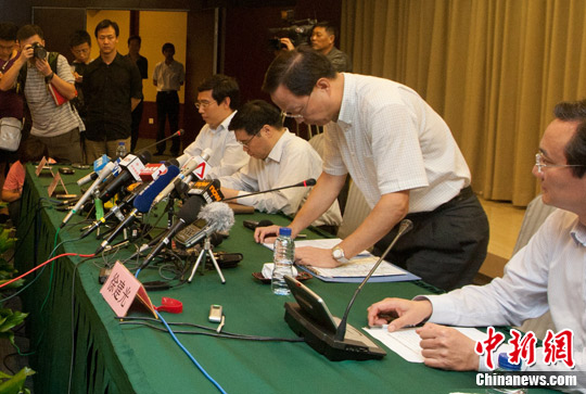 9月27日,上海地铁十号线追尾事故新闻通气会,申通地铁有限公司总裁俞光耀鞠躬致歉。中新社发 陈中秋 摄 图片来源:cnsphoto