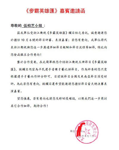 张柏芝邀请函