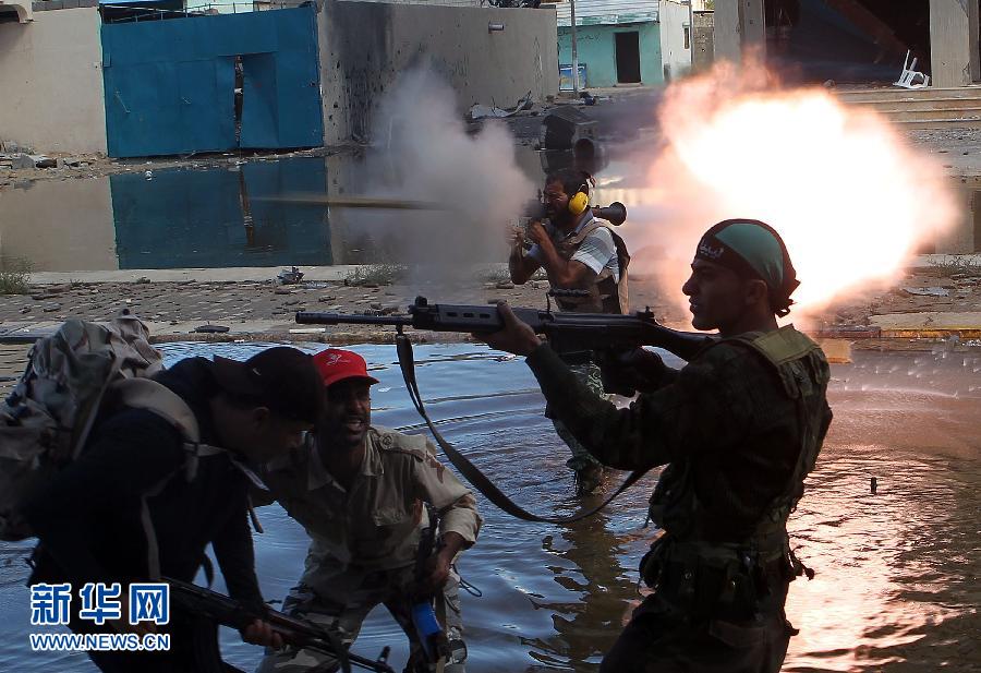 10月15日,在利比亚苏尔特,利比亚执政当局武装人员向卡扎菲残余势力还击。当日,利比亚执政当局一名消息人士说,当局武装目前遏制了卡扎菲残余势力在苏尔特的攻势,致使后者无法使用重型武器,只能依赖狙击手进行反击。目前,利比亚执政当局武装和卡扎菲残余势力的战斗主要集中在苏尔特市和东南部的拜尼沃利德市。新华社/路透