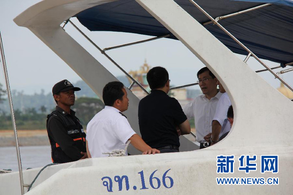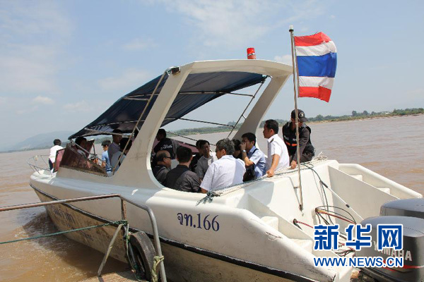 当天上午,工作组在泰国警察总署负责刑侦事务的副总监披西以及中国驻泰国使馆领事官员的陪同下,乘坐泰国警方快艇对中国船员在湄公河遇袭身亡事件事发水域进行了勘察。