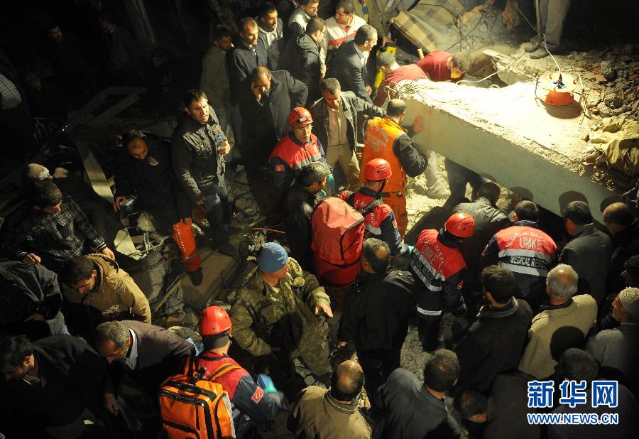 10月23日,在土耳其东部凡省埃尔吉斯,当地民众和救援人员一起在废墟中寻找生还者。土耳其总理埃尔多安23日说,到目前为止,土耳其东部凡省发生的强烈地震已经造成138人死亡、350人受伤。据土耳其伊斯坦布尔地震研究中心报告,当地时间23日13时41分(北京时间18时41分),凡省发生里氏7.2级地震,震中位于和伊朗接壤的凡省塔巴利村,震源深度5公里。新华社/法新