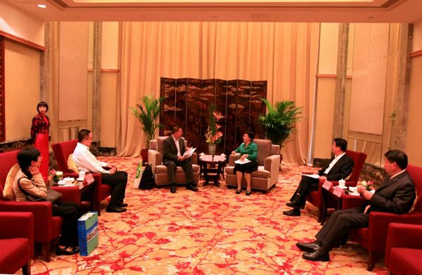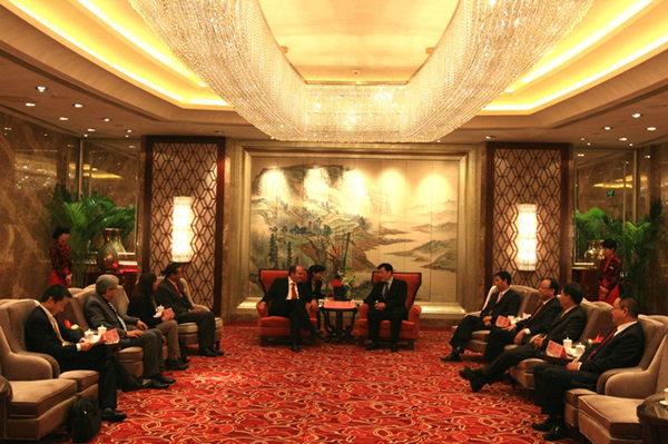 10月20日下午,市委副书记、市长刘奇,市委常委、副市长余红艺在香格里拉酒店分别会见前来参加和丰创意广场开园庆典的海内外贵宾,陈克温董事长会见时在座。