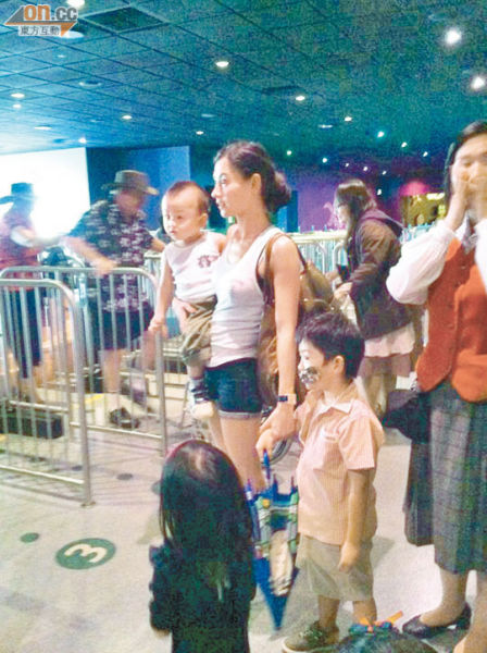 张柏芝与Quintus同穿小背心,Lucas则穿红白间条纹T恤,手拿卡通雨伞。为配合主题公园的万圣节开心气氛,Lucas脸上更贴了一张贴纸,在公园内玩得不亦乐乎,非常可爱。期间不少人认出张柏芝三母子,有人更拿出相机拍照。