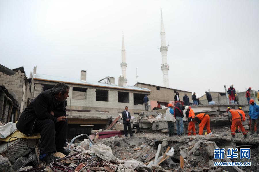 10月25日,在土耳其东部凡省埃尔吉斯,当地居民哈桑凝望着已经倒塌的家,希望搜救人员能救出自己两名埋在废墟下面的叔叔。当日,土耳其东部凡省23日发生的强烈地震造成的死亡人数已上升至459人,另有1352人受伤。凡省当日下午开始下雨,给搜救工作带来极大的困难,但搜救人员仍然争分夺秒的工作,竭尽全力找寻生命迹象。新华社记者马研摄