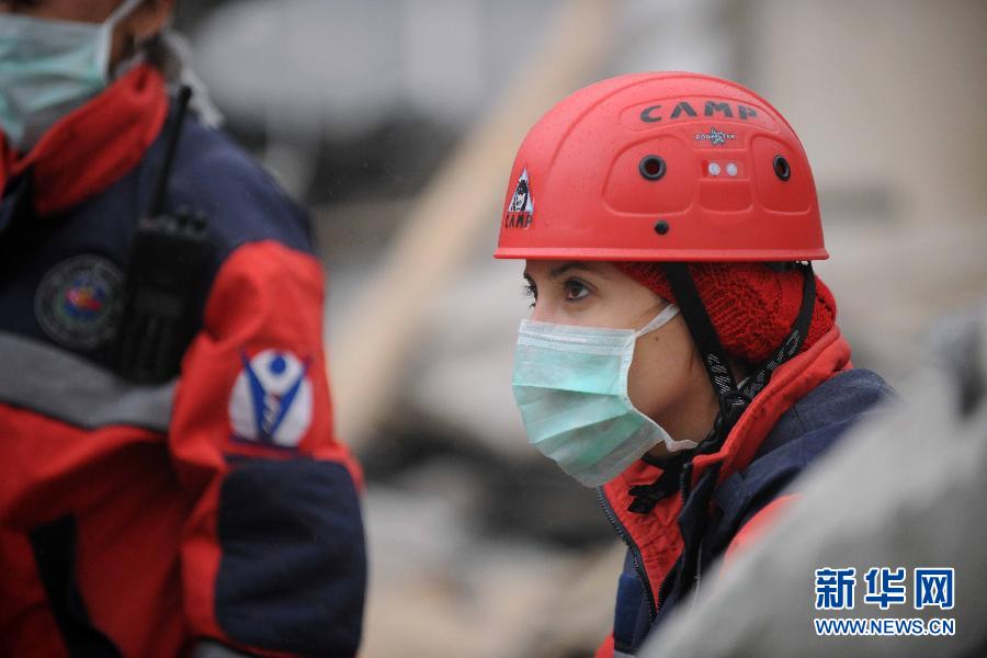 10月25日,在土耳其东部的凡省,救援人员冒雨在废墟中寻找生还者。当日,土耳其东部凡省23日发生的强烈地震造成的死亡人数已上升至459人,另有1352人受伤。凡省当日下午开始下雨,给搜救工作带来极大的困难,但搜救人员仍然争分夺秒的工作,竭尽全力找寻生命迹象。新华社记者马研摄