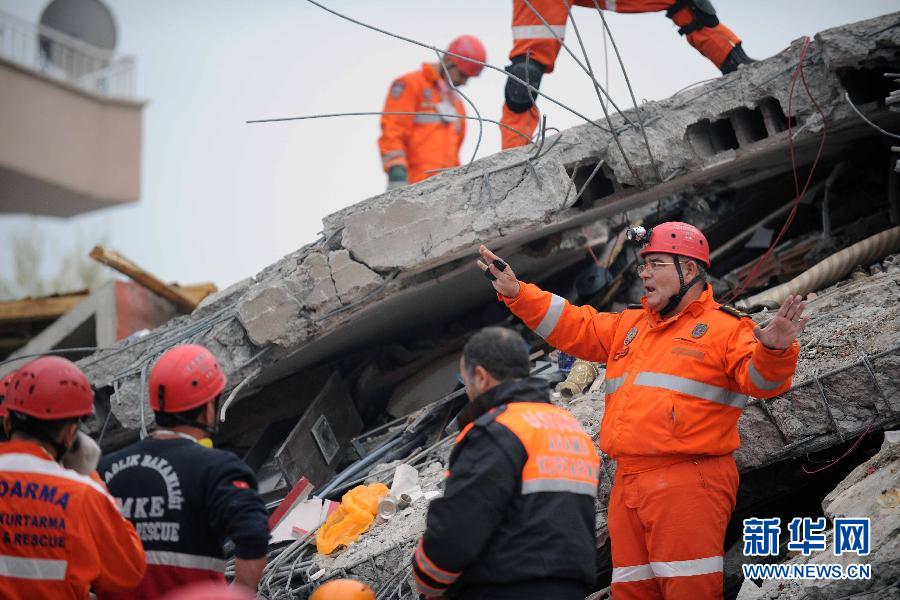 土耳其东部地震搜救工作在雨中进行