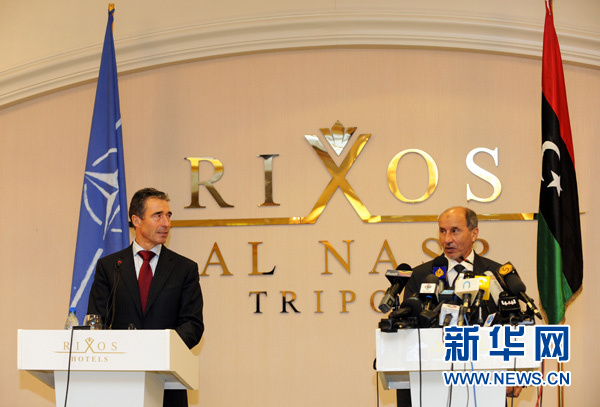 贾利勒对拉斯穆森的到访表示欢迎,称北约在利比亚人民推翻卡扎菲政权的过程中起到了重要作用,并代表利比亚向北约表示感谢。