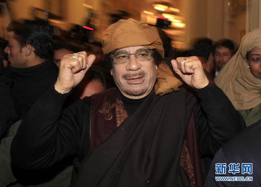 10月20日,利比亚“全国过渡委员会”执行委员会主席贾布里勒在新闻发布会上证实,卡扎菲当天在苏尔特身亡。这张2011年3月8日的资料照片显示的是,卡扎菲在利比亚的黎波里准备参加电视访谈。 新华社/路透