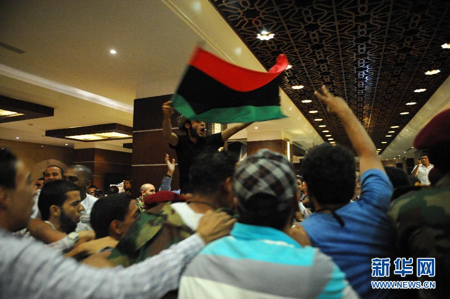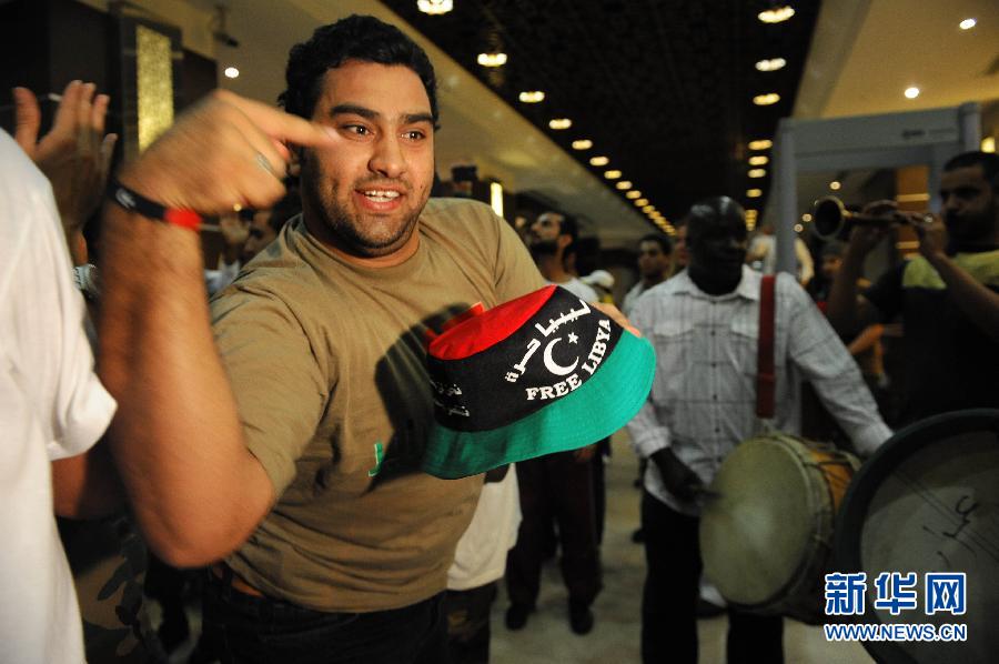 10月20日,在利比亚首都的黎波里,当局武装人员在街头庆祝卡扎菲死讯。 新华社记者李木子摄
