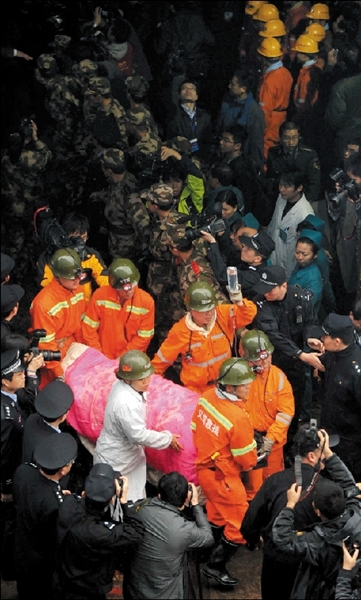 昨天11时46分,最后一名获救矿工被抬出矿井。