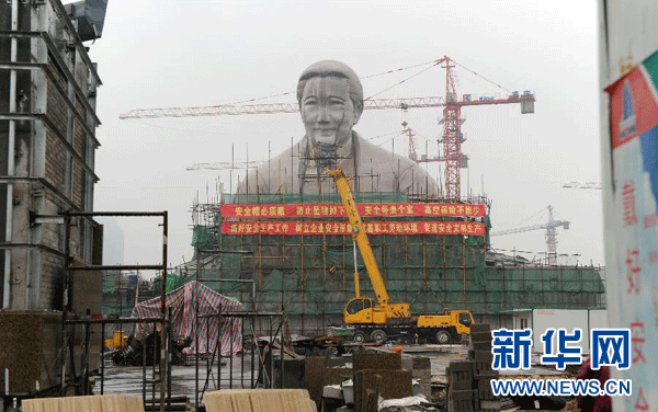 这座高度超过8层楼的巨型雕像即将完工。雕像究竟有没有原型或者原型究竟是谁,目前相关方面还在打“口水仗”。其实,澄清这一是非,或许本来就不是建造方的目的。看一看雕像基座下以及旁边的相关施工项目,人们不难明白什么叫“明修栈道,暗度陈仓”。