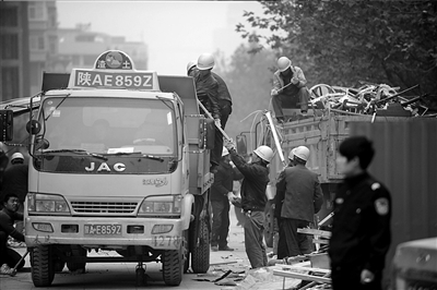 昨天中午,记者来到现场时,大厦前被炸毁的公交车站残骸已被清理完毕,交通基本恢复正常,但由于现场围观群众依然很多,过往车辆通行并不顺畅。大厦一层外仍然围着一圈蓝色钢板,几十名工人和三辆工程车在现场清理废墟。一名工人告诉记者,大厦一层出事前是被隔成好几间作商铺使用的,爆炸发生后,所有的隔板都被炸开,整个一层已经被打通成了空荡荡的一大间。