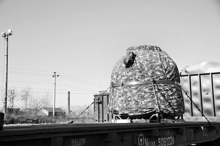 11月19日,载有神州八号飞船返回舱的专列驶入北京昌平火车站。