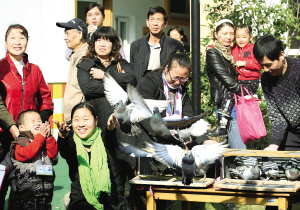 11月21日是世界问候日。连日来,鄞州区姜山镇小城春秋幼儿园开展“文明始于问候”主题系列活动,教育孩子对家长、老师、社会常怀感恩之心,从小学习文明礼仪。图为家长和孩子一起放飞系有问候字条的鸽子。
