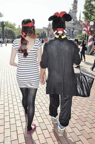 陈浩民与太太蒋丽莎十指紧扣畅游主题公园。图片来源:香港“明报”