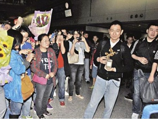 刘德华返港,开心秀出手上金马影帝奖座 图片来源:台湾“今日新闻网”