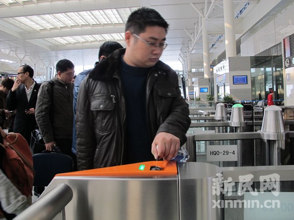 乘客金喜良今天10时51分搭乘G7138次列车前往南京,他之前先在网络上购买了车票,今天选择直接刷二代身份证入站,“昨天在电视上看到今天开始实行,特地来试试”。