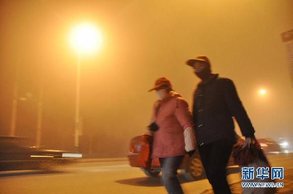 12月3日,在山东滨州街头,市民在大雾天气出行。当日,山东鲁西北西部、鲁西南和鲁中北部地区出现大雾天气,山东气象台发布大雾橙色预警信号。 新华社发(李荣新)