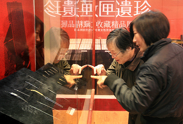 12月6日上午,北仑区2010年“宁波市历史文化名城保护日”系列活动暨“妆匣遗珍”——初成藏品展开幕式在北仑博物馆举行,副区长丁素贞等领导出席了开幕式。 作为第二个“名城日”的重要文化活动,“妆匣遗珍”传统饰品展是北仑博物馆继推出“海外遗珍”外销瓷展、“翠色古韵”古青瓷展、“灵石奇葩”精品展后的又一民间藏品展,展览展出了北仑收藏家初成先生提供的清至民国时期的女性传统饰品,共计300余件。这些饰品品类多样、款式丰富、工艺精湛,让参观的群众叹为观止。一位观众告诉记者:“以前这些发簪、步摇之类的饰品只能在书上或者电视上看到,现实生活中难得一见,今天看到实物了,真是大饱眼福啊!”据了解,此次饰品展将持续到明年四月。