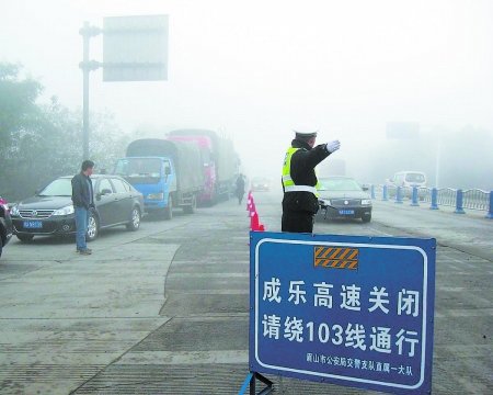 眉山迎入冬后最大雾 成乐高速关闭3小时(图)