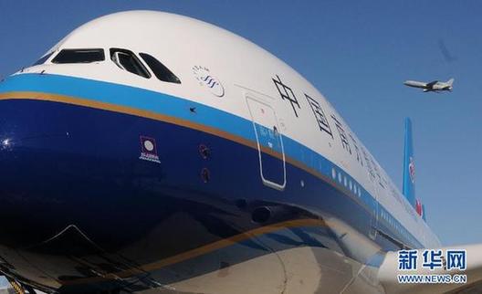 2011年10月13日,一架即将交付中国南方航空公司的空客A380停在法国图卢兹的机场上。空中客车公司定于10月14日向中国南方航空公司交付首架A380飞机。南航将成为中国首家、全球第七家运营空客A380的航空公司。新华社发