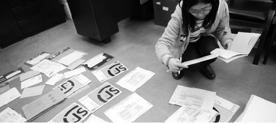 工作人员连夜整理来自全球的西湖LOGO图案。记者胡元勇摄