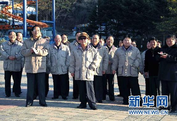 朝中社12月4日提供的照片显示,朝鲜最高领导人金正日(前中)近日视察了平壤凯旋青年公园。 新华社/朝中社