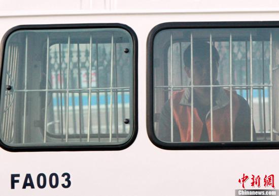 12月21日,辽宁省丹东市中级人民法院继续公开审理中国足坛“反赌扫黑”案中的涉案人员。图为当日8时7分,载有昔日“金哨”陆俊的囚车驶进丹东市中级人民法院。中新社发 于海洋 摄