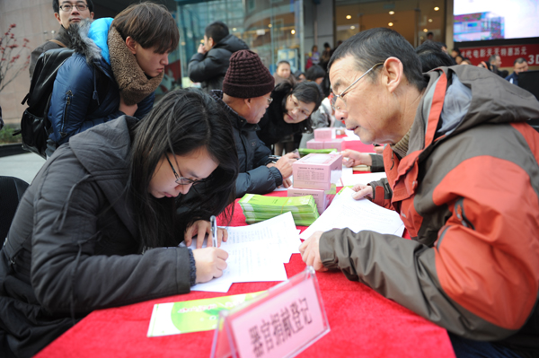 市民在现场填写《器官捐献自愿书》(中国宁波网记者 冯雷摄)