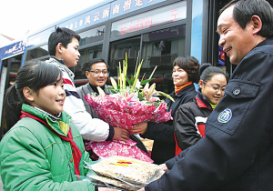 昨天下午,市聋哑学校6名学生带着慰问品来到公交长丰站点,看望与其结对的“爸爸妈妈”们,用自己的方式感谢他们的帮助和照顾。