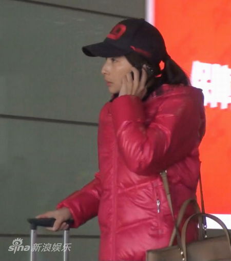郭晶晶独自回北京 穿红色羽绒服现身机场(图)