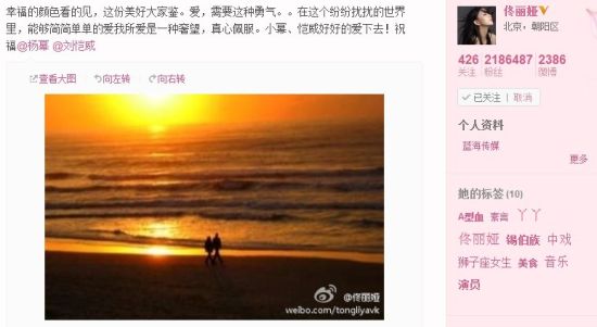 众星微博祝福幂威恋 佟丽娅羡慕应采儿赞好男儿