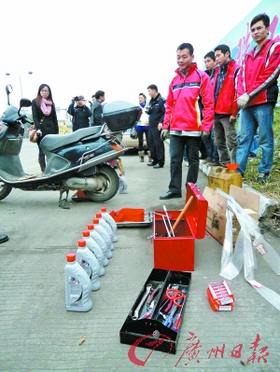 摩托“骑士”享免费修车服务。记者于敢勇 摄