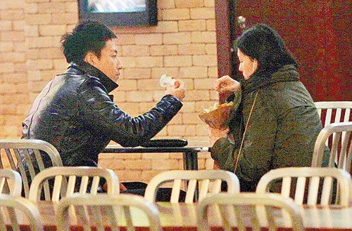 汪小菲(左)和大S在美食街吃零食聊天,等电影开场。图片来源:台湾《苹果日报》