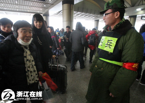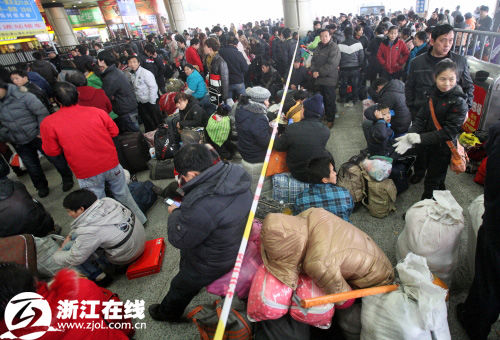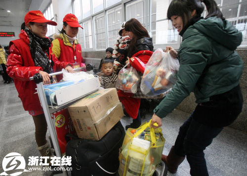 目前,铁路杭州站的客流仍以民工返乡客流、探亲流和返程学生客流为主,客流主要集中在云贵川渝、陕西、湖南、湖北和河南等地。明天开始,省内中短途客流开始启动,主要集中在义乌、金华、江山、甬台温等方向。