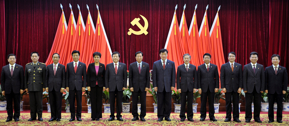 十二届市委常委成员(左起):陈伟俊、赵凯、陈利幸、王惠敏、余红艺、王勇、王辉忠、刘奇、寿永年、王剑波、朱伟、暨军民、周江勇