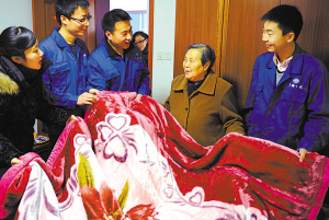 近日,在宁波轨道交通1号线施工的中铁三局工作人员,来到江东樱花社区独居老人的家里,向老人送上棉制品和生活必需品,以此回报市民对他们工作的理解和支持。