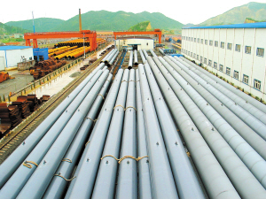图为科鑫公司已经过防腐处理的超长钢管桩。