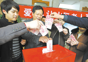 昨天下午,江北区庄桥街道李家村企村联合慈善分会成员单位——永发运输物流有限公司员工举行捐款活动,为贫困山区建设老年活动中心募集资金。作为我省第一个企村联合慈善分会,自2010年成立以来,在该村辖区内的企业和热心人士的支持下,庄桥街道李家村企村联合慈善分会每年都筹集超过120万元的善款用于村内外的农民重特大病救助及江北区贫困家庭、外来务工人员等特殊群体的扶贫帮困工作。