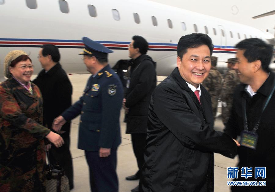 来自宁夏的全国政协委员抵京 3月1日,来自宁夏回族自治区的全国政协委员抵达北京参加全国政协十一届五次会议。 这是全国政协委员朱奕龙(右二)等抵达北京西郊机场。新华社记者刘泉龙摄