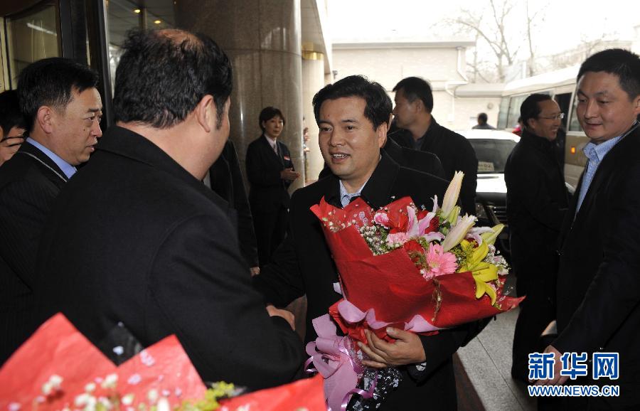 宁夏代表团抵京 3月2日,来自宁夏的全国人大代表抵达北京驻地,参加十一届全国人大五次会议。新华社记者 王鹏 摄