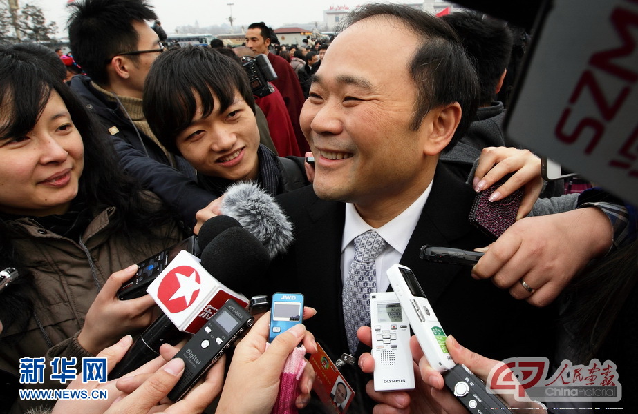 3月3日,中国人民政治协商会议第十一届全国委员会第五次会议在北京人民大会堂开幕。图为全国政协委员李书福在接受记者采访。