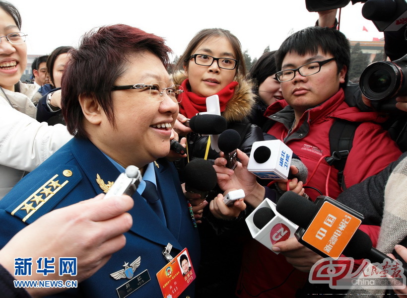 3月3日,中国人民政治协商会议第十一届全国委员会第五次会议在北京人民大会堂开幕。图为全国政协委员韩红在接受记者采访。